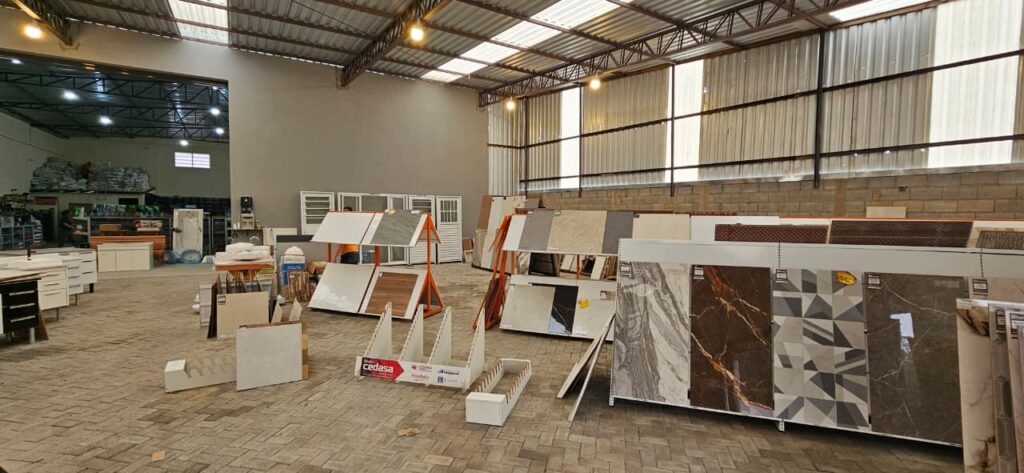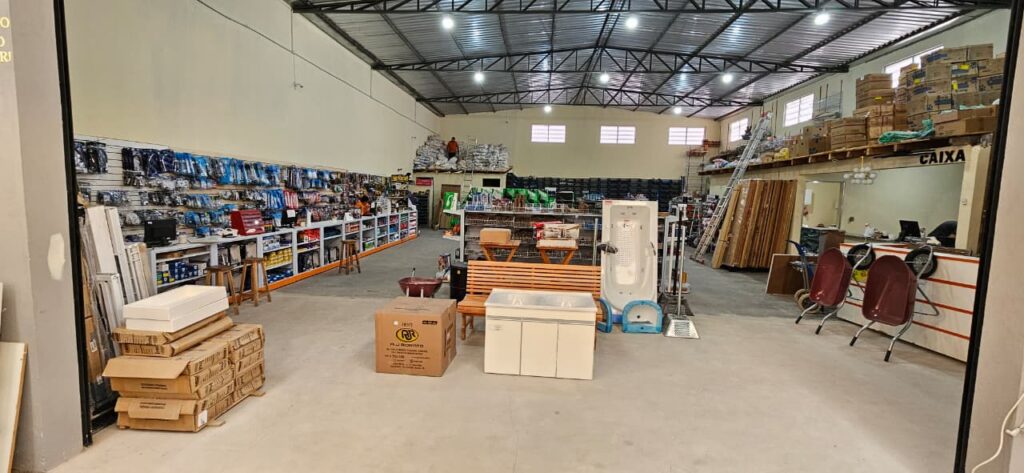 • Tubos e conexões, pisos, porcelanatos, revestimento, louças sanitárias, chuveiros, torneiras, caixa d’água, gabinetes de cozinha, gabinetes de banheiros, biodigestor, portas, janelas, telhas, impermeabilizantes, ferramentas eletrônicas e manuais.